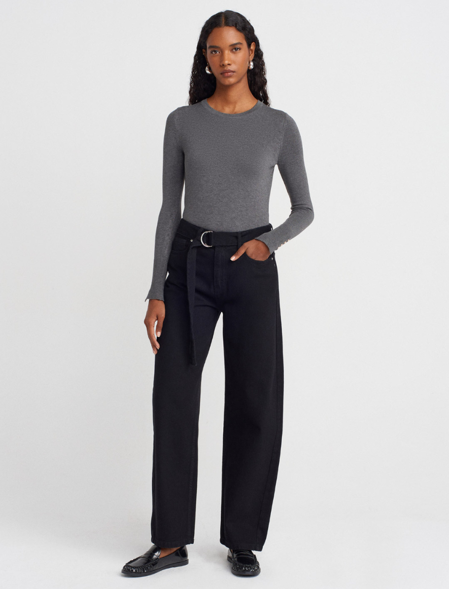 Bisiklet Yaka Yünlü Basic Triko Siyah Siyah Kazak