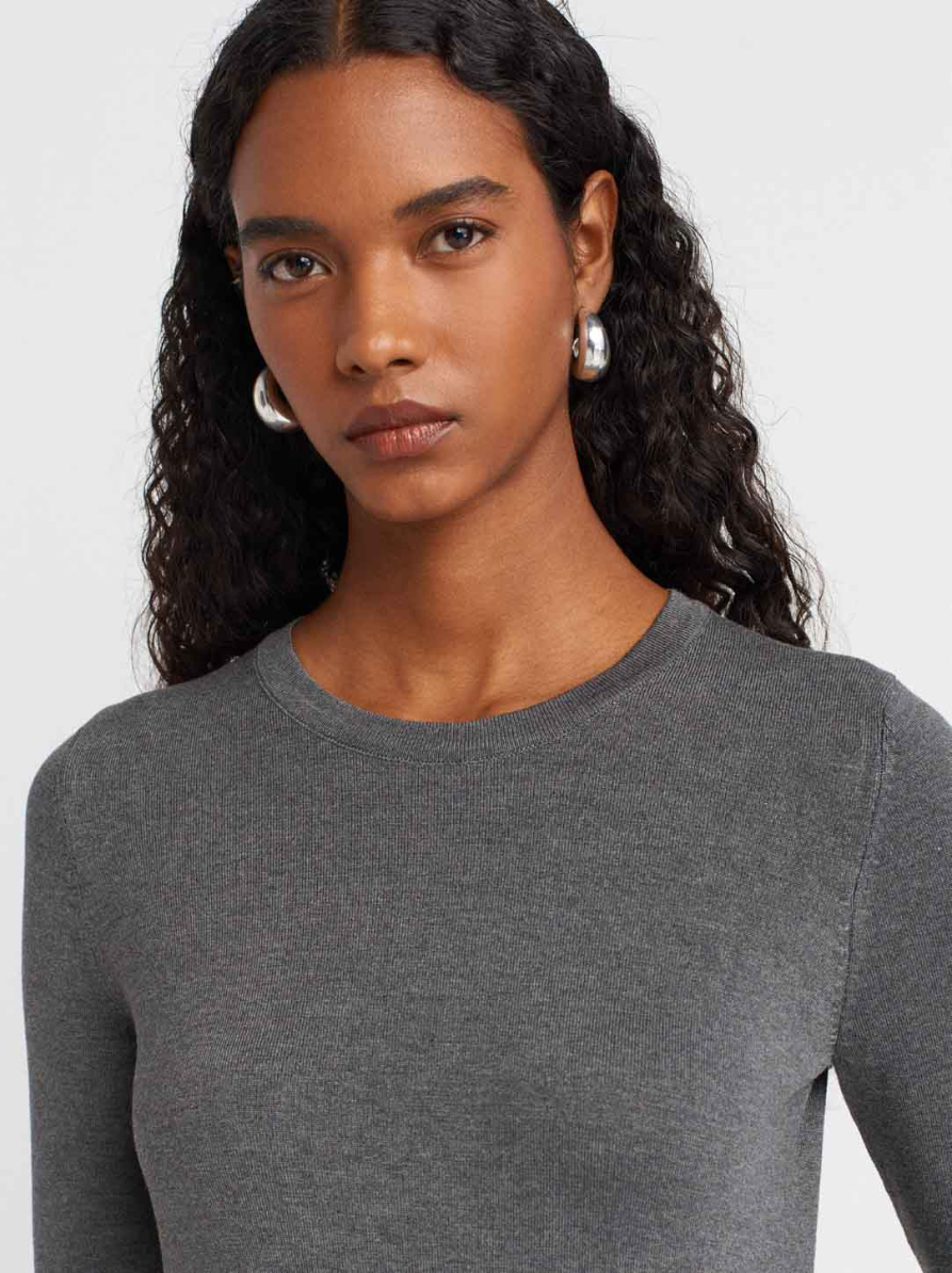 Bisiklet Yaka Yünlü Basic Triko Siyah Ekru Kazak