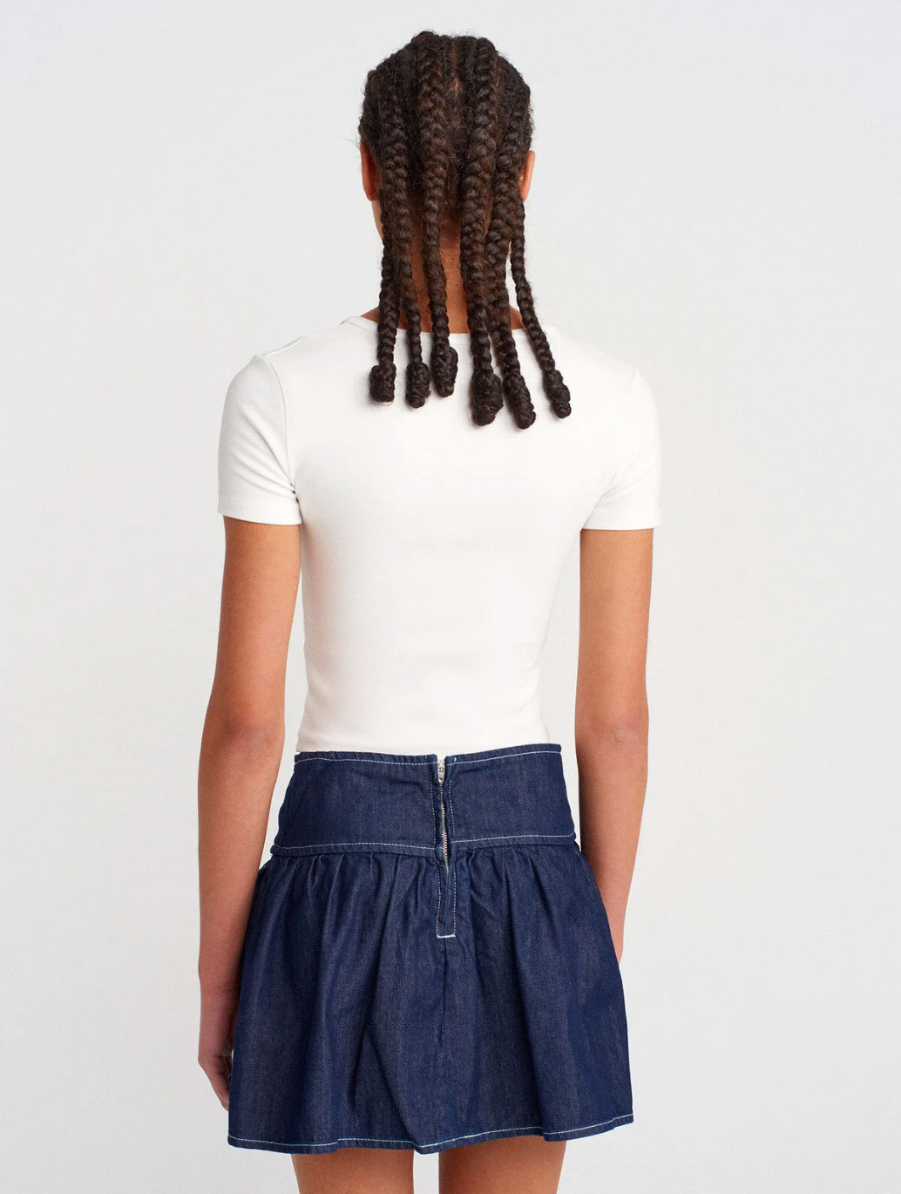 Çıtçıt Düğmeli Kısa Kollu Saks Top Tişört