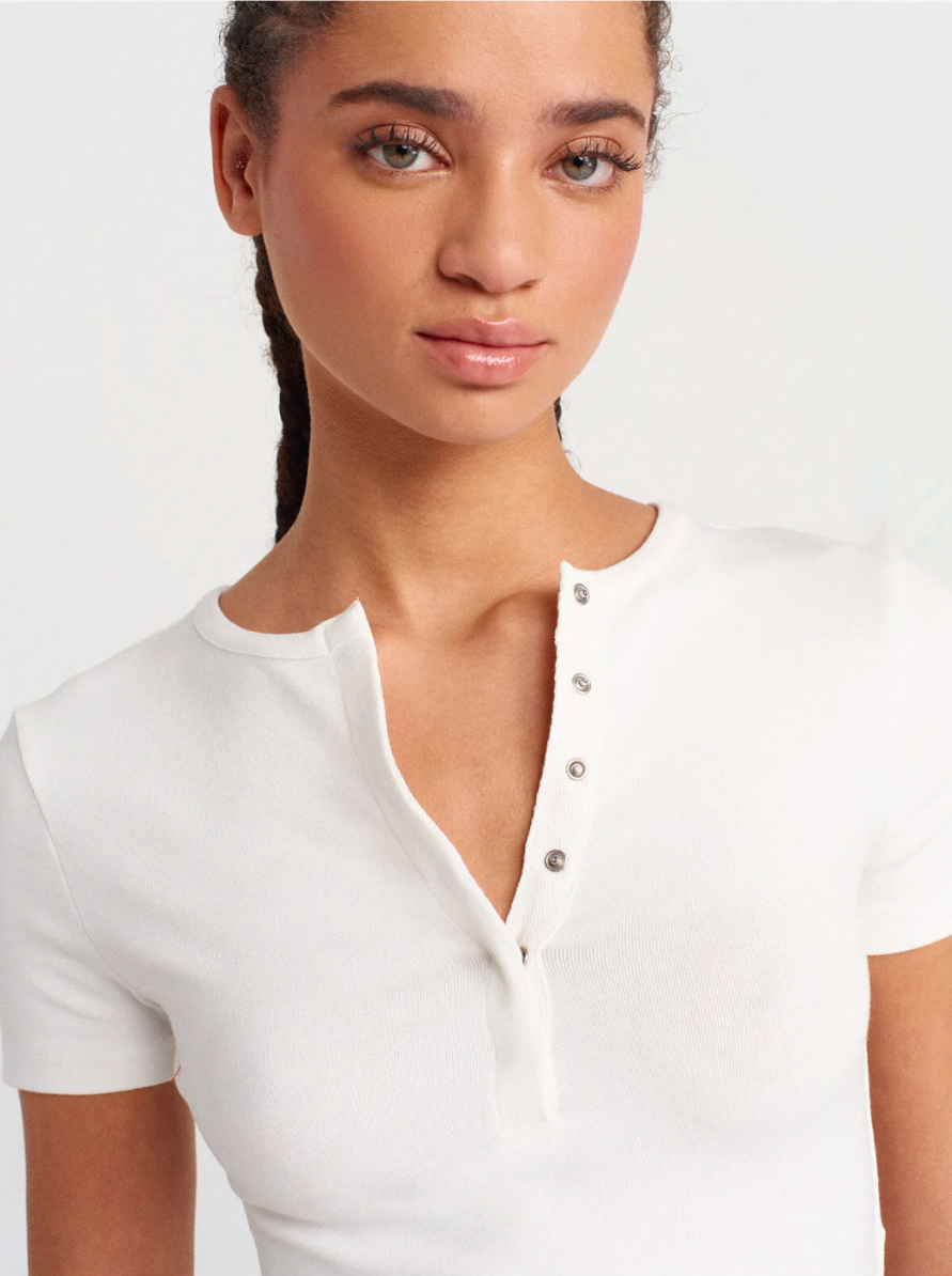 ÇITÇIT DÜĞMELİ KISA KOLLU EKRU TOP TİŞÖRT