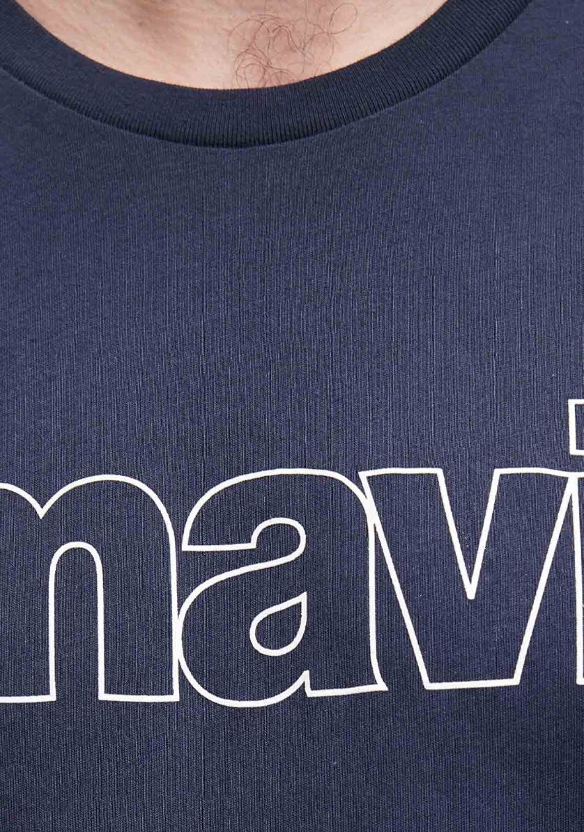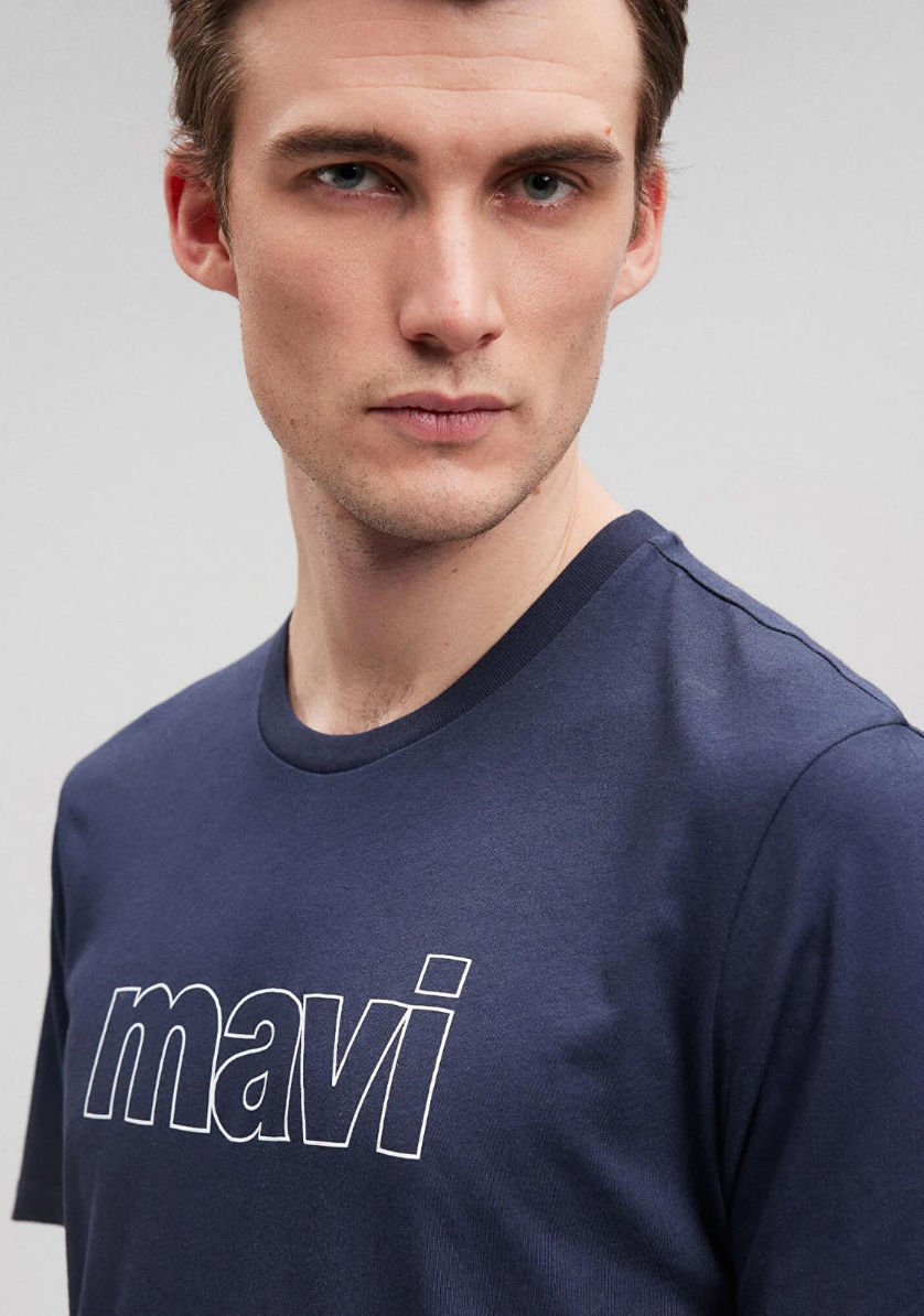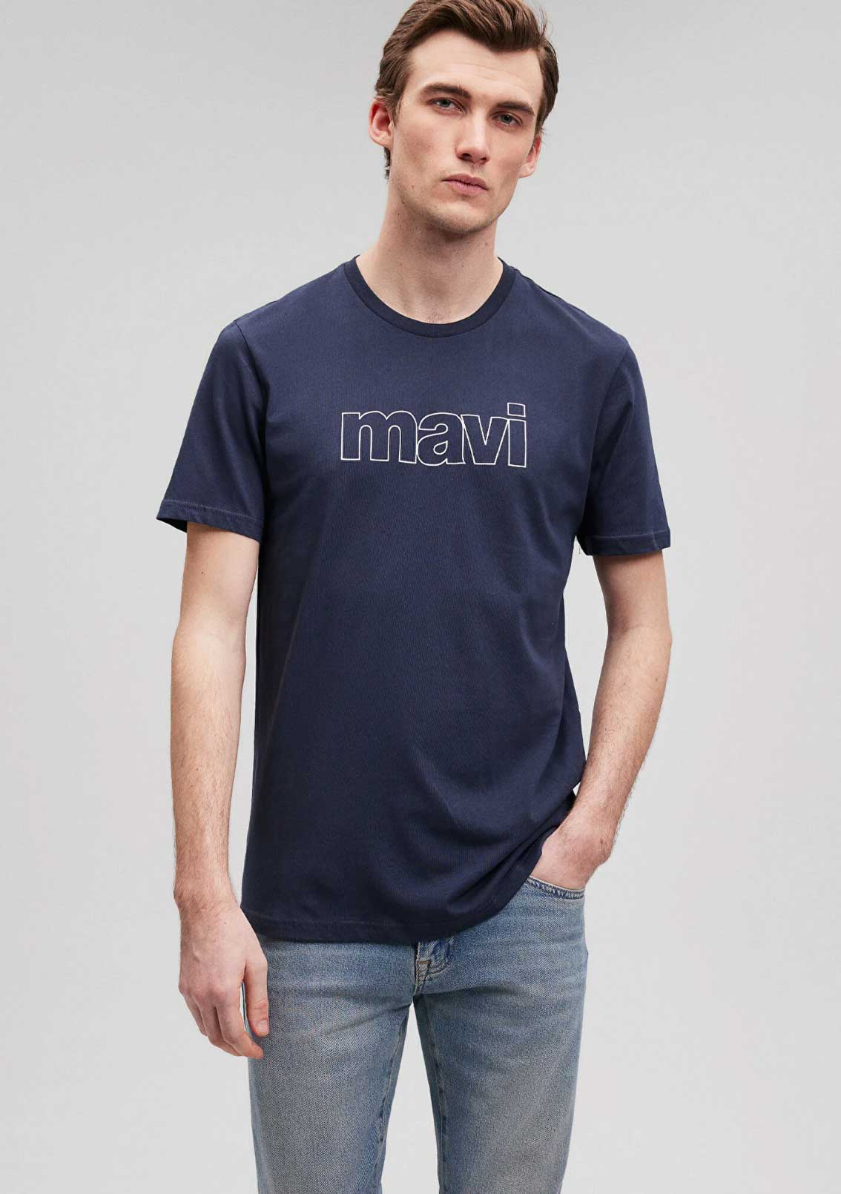 Gece Lacivert Mavi Logo Baskılı Pamuk Tişört