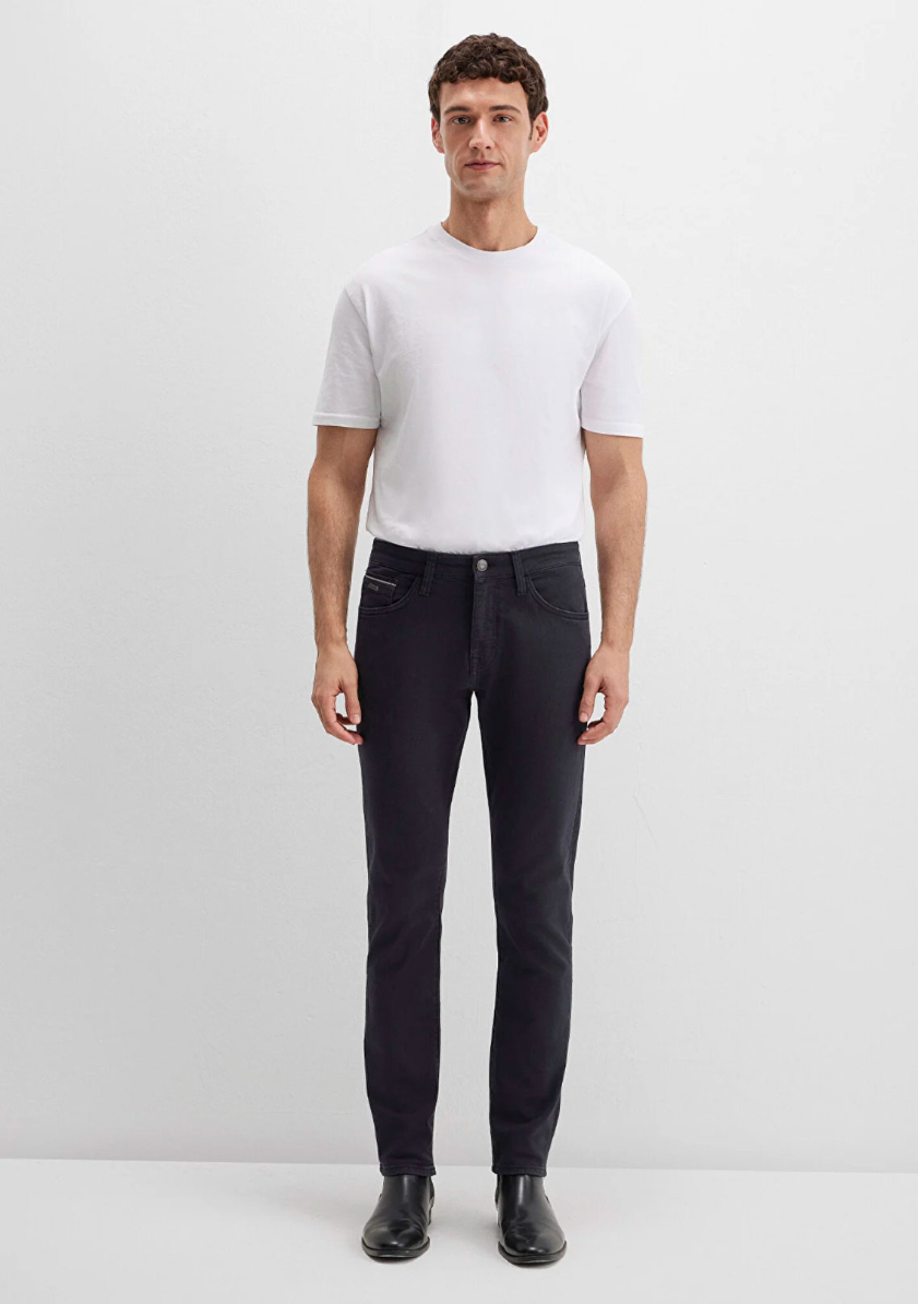 Mavi Black koleksiyonundan Jake Mavi Black Koyu Lacivert Gabardin Pantolon. Skinny. Düz kesim. Dar paça. Mavi Black, farklı tekniklerle zenginleştirilen güçlü logo detayları ve zamansız tasarımlarıyla şehirli erkeğin stilini modern bir çizgide yorumluyor. Modal ve Lyocell karışımlı yumuşak kumaşlar, rahat kesimlerle birleşerek şıklığı konforla buluşturuyor.