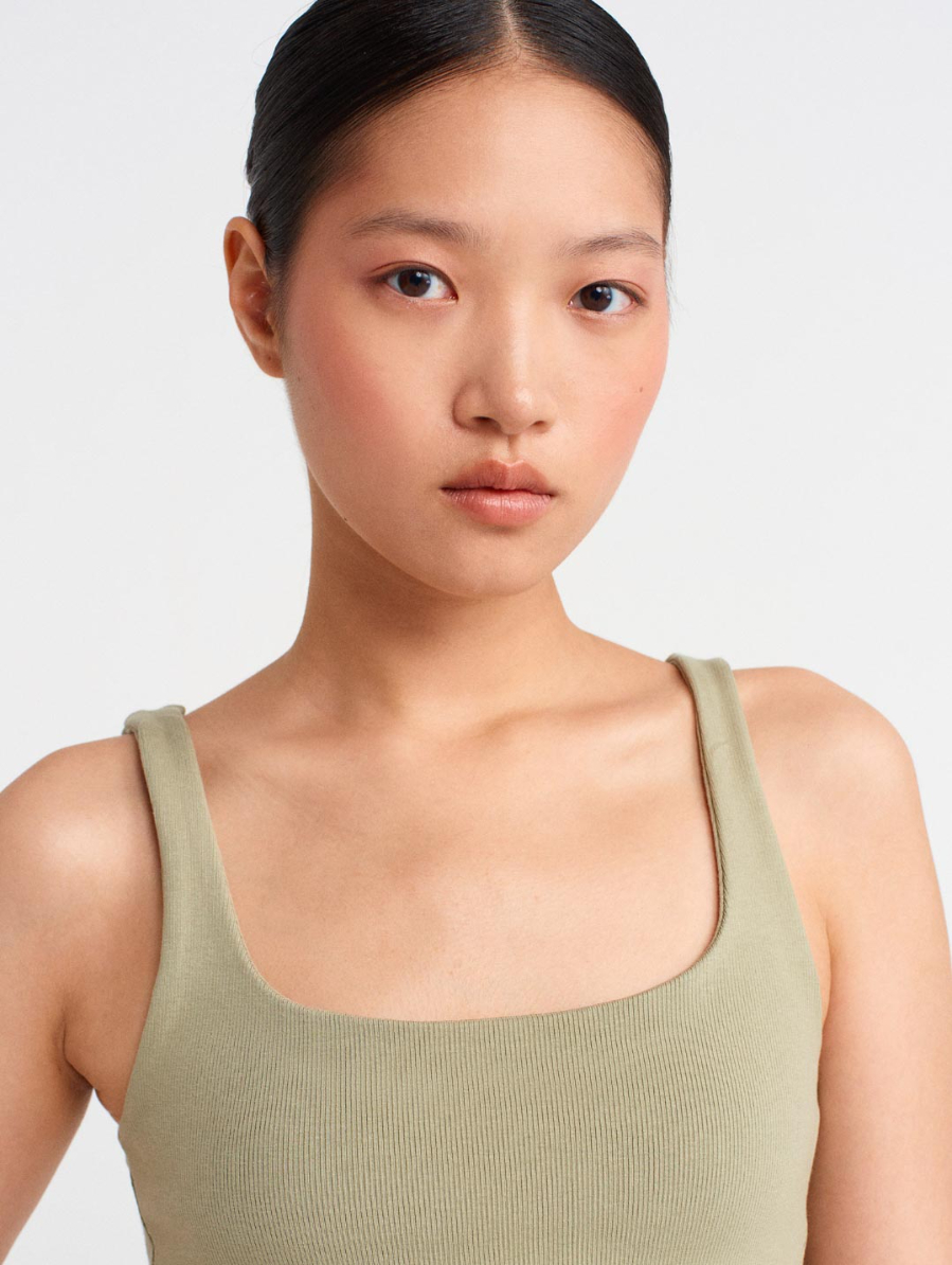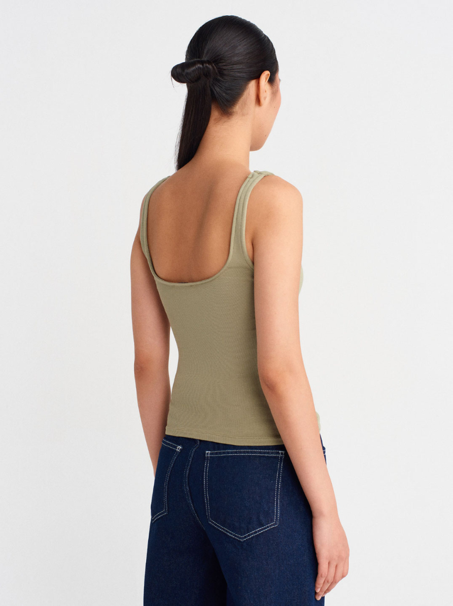 Kalın Askılı Çizgili Ekru-Siyah Atlet