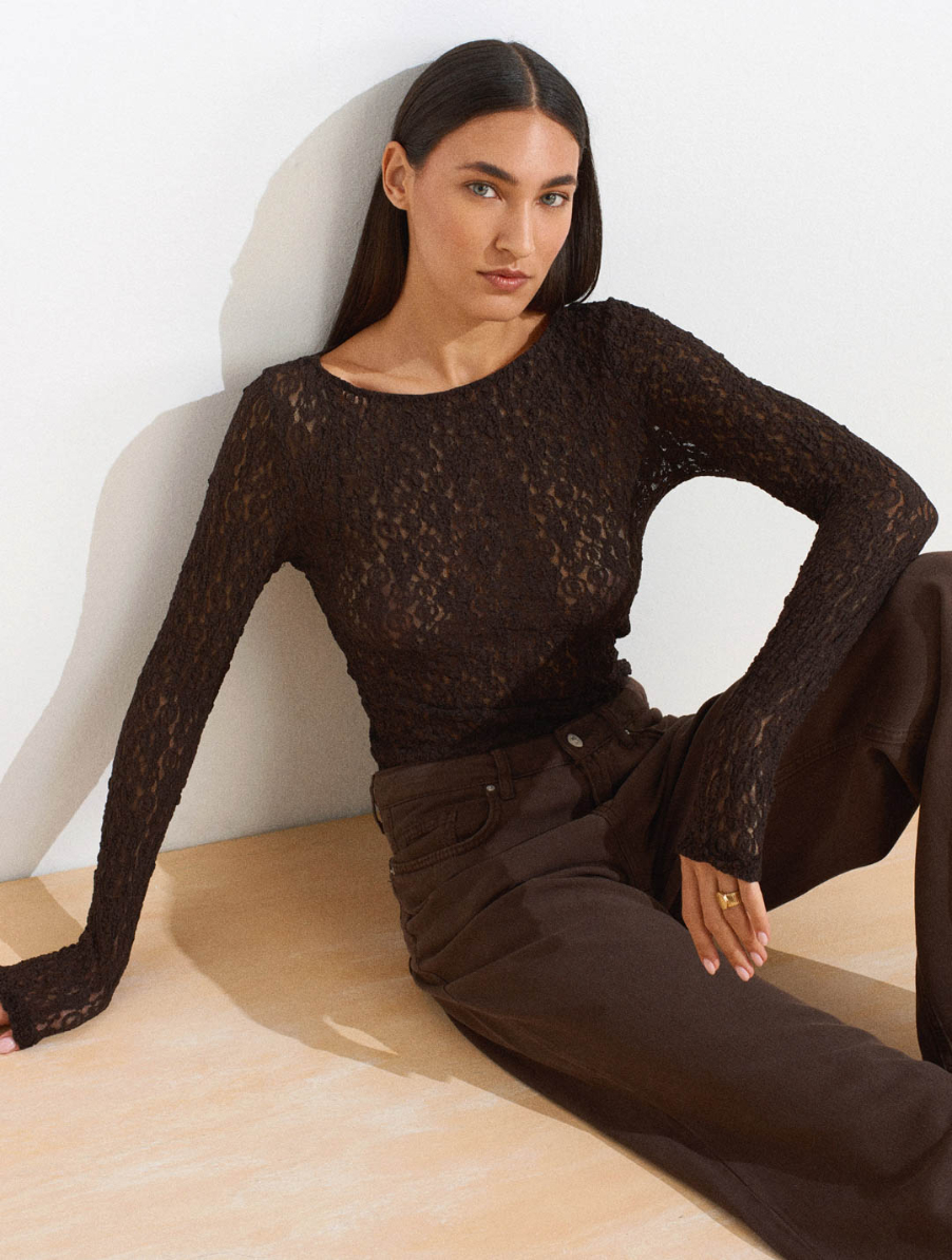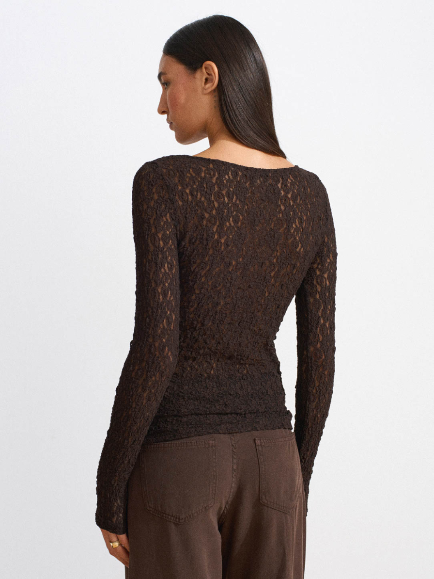 Kayık Yaka Modal Kaşmir Ultra Hafif Kahve Bluz