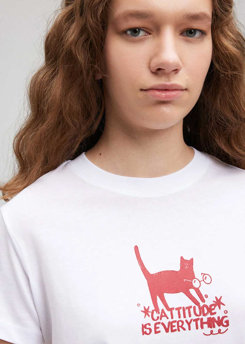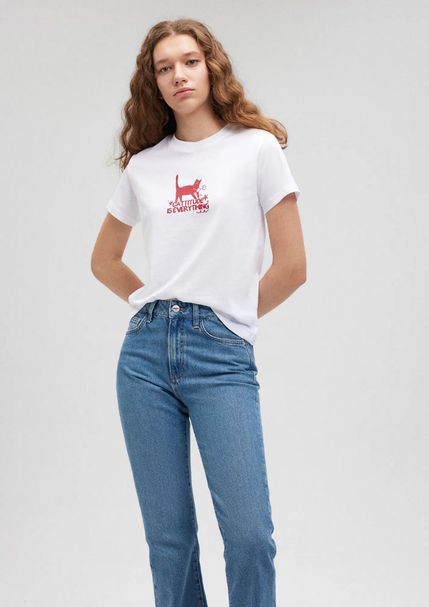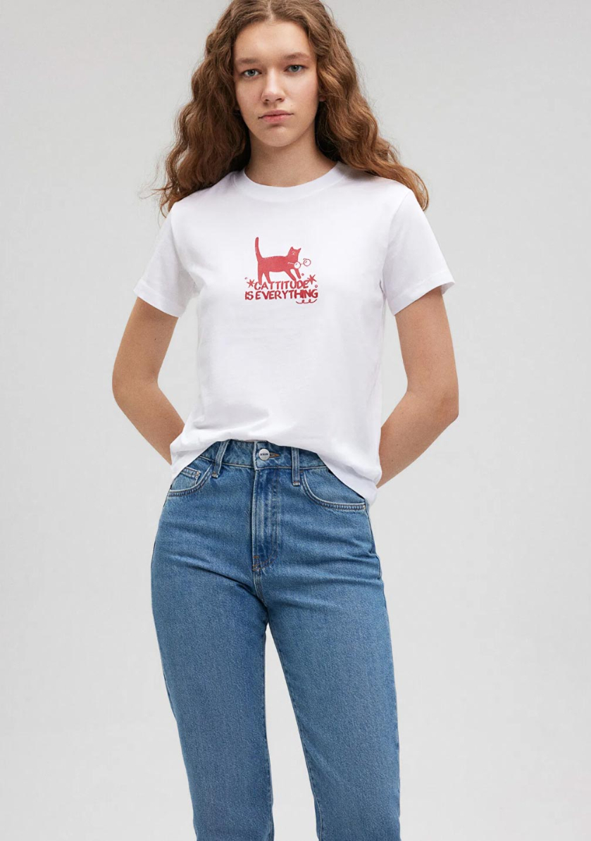 Mavi nin kadın koleksiyonundan Kedi Baskılı Beyaz Tişört. Slim Fit / Dar Kesim Kısa Kol Model Ölçüleri: Boy: 178 cm Bel: 60 cm Göğüs: 86 cm Kalça: 88 cm Model Üzerindeki Ürün Bedeni Jeanler İçin, Bel: 25 Boy: 32 Diğer Ürünlerde: S