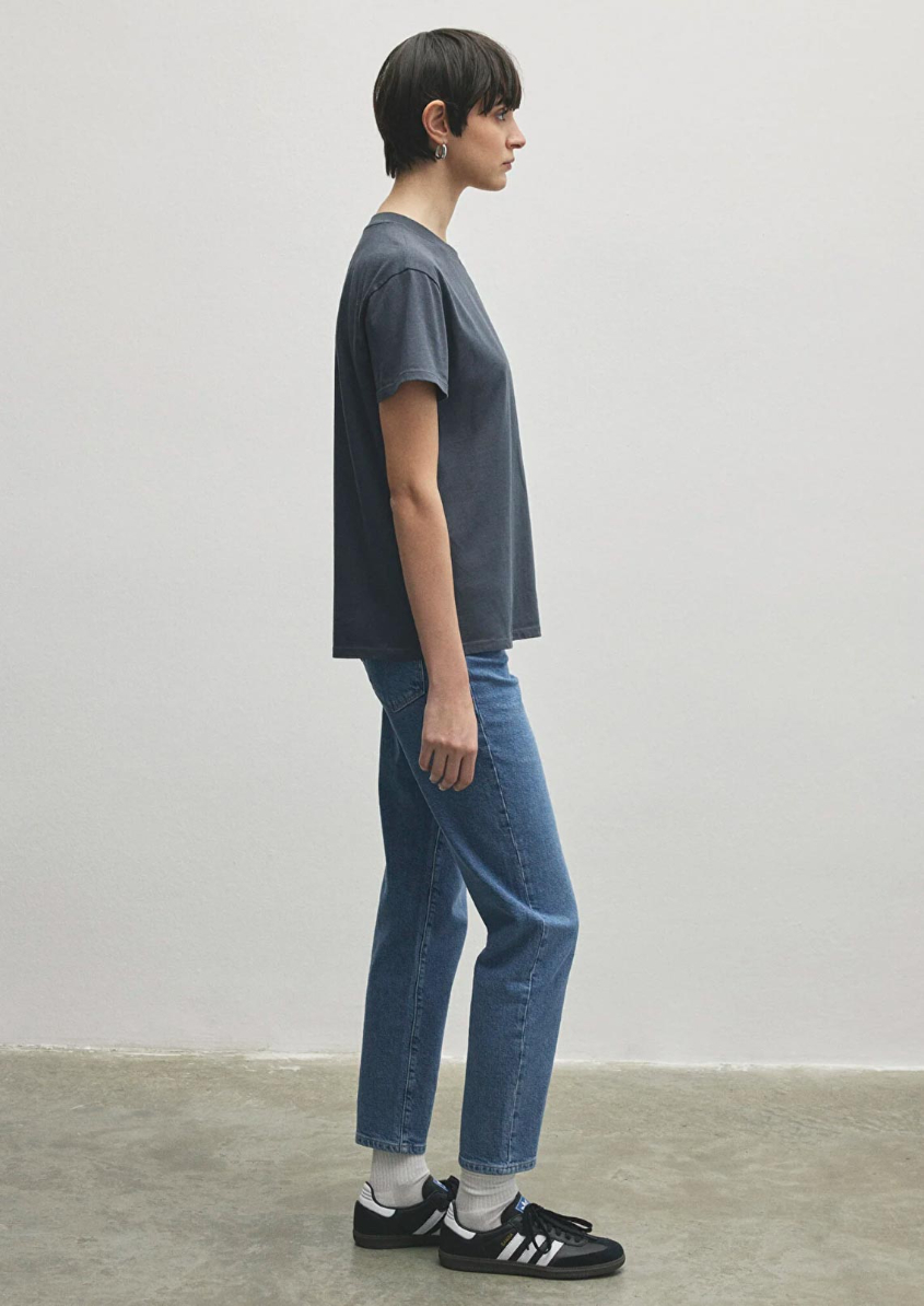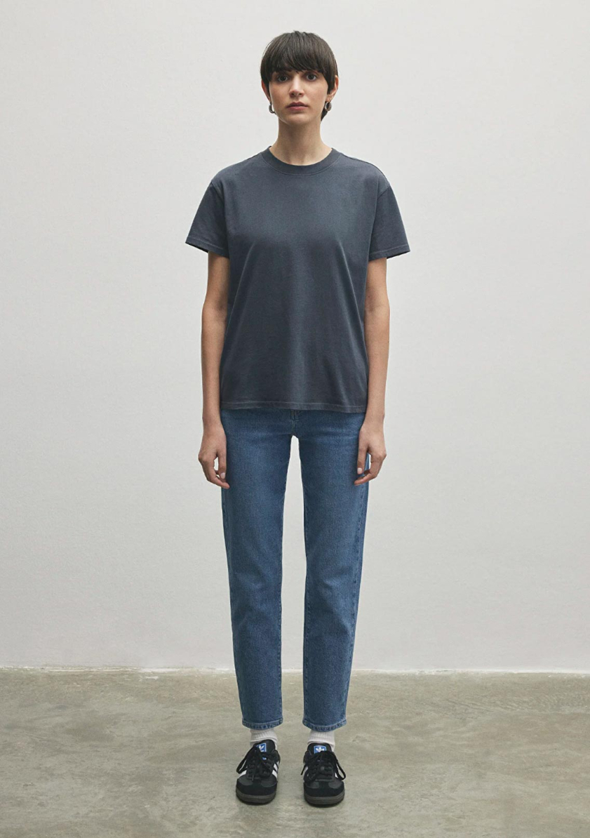Basic Tişört, yüzde yüz pamuklu orta ağırlıkta kumaştan üretilmiştir. Bisiklet yakalı ve kısa kollu tasarımıyla günlük kullanım için idealdir. Koyu rengi ve düz dokusuyla sade bir görünüm sunarken, organik malzemeler kullanılarak üretilmiştir. Loose fit, rahat kesimi ile konforlu bir giyim deneyimi sağlar.