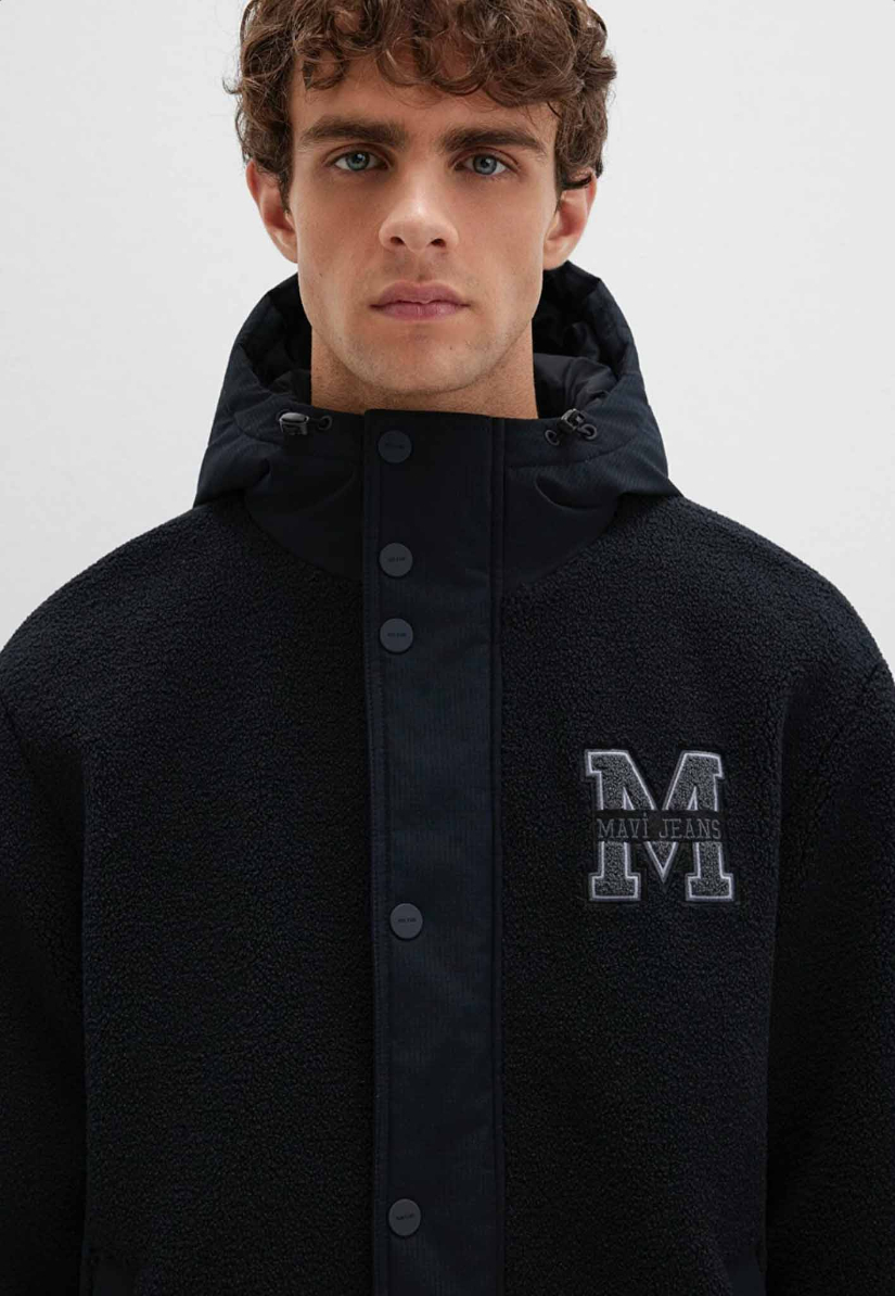 Mavi nin dış giyim koleksiyonundan M Logo Patchli Siyah Mont. İki adet yan cep, stoperli iple ayarlanabilir sabit kapüşon, bir adet iç cep, kapüşon hariç dışı sherpa.
