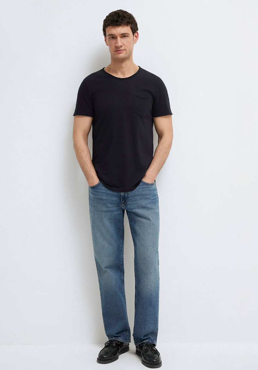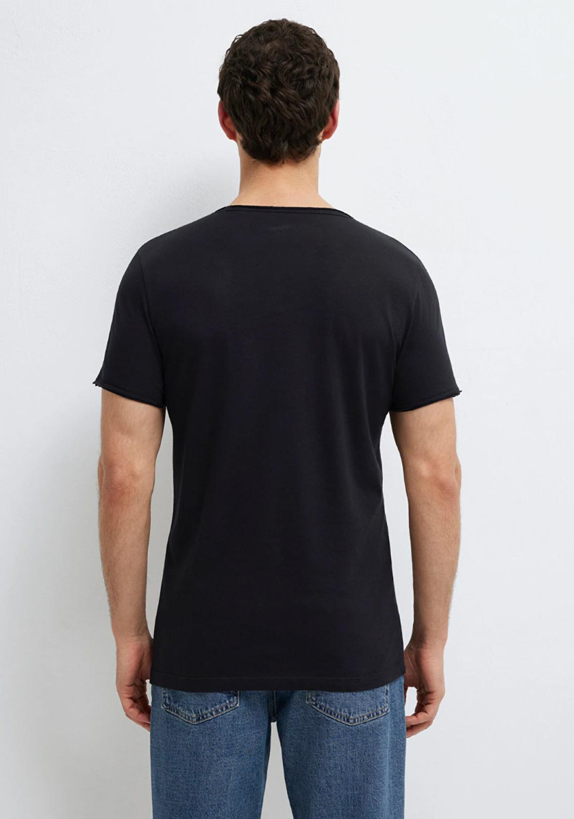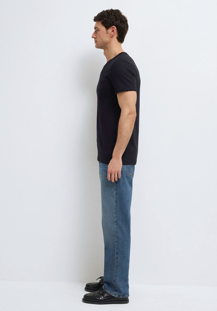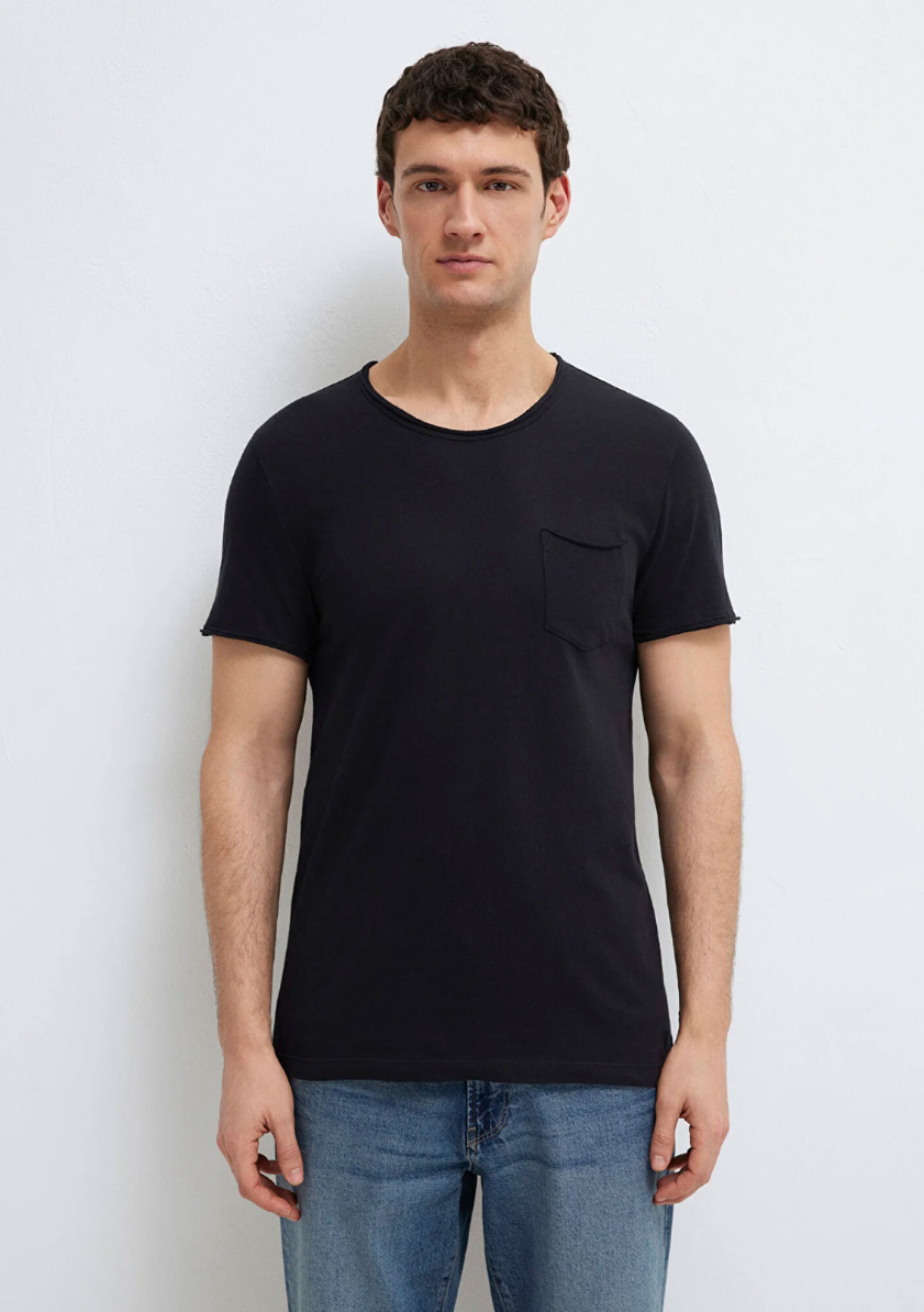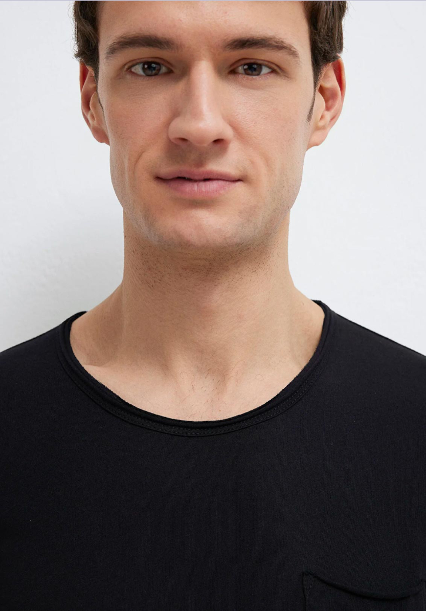 Dikişli Cep Detaylı Siyah Tişört, yüzde yüz pamuklu hafif ağırlıklı kumaştan üretilmiştir. Fitted, vücuda oturan kesimi ve bisiklet yakası ile şık bir görünüm sunarken, göğsündeki tek cep detayı ile klasik tasarıma modern bir dokunuş katar. Kısa kollu yapısı ve düz dokusuyla, günlük kullanım için ideal bir seçenektir.