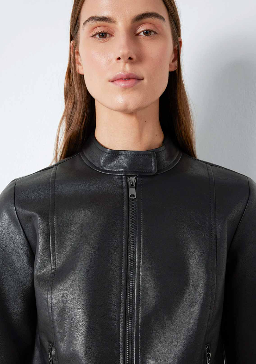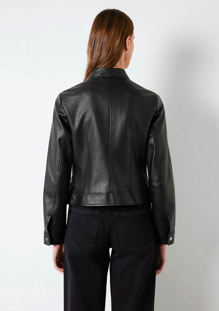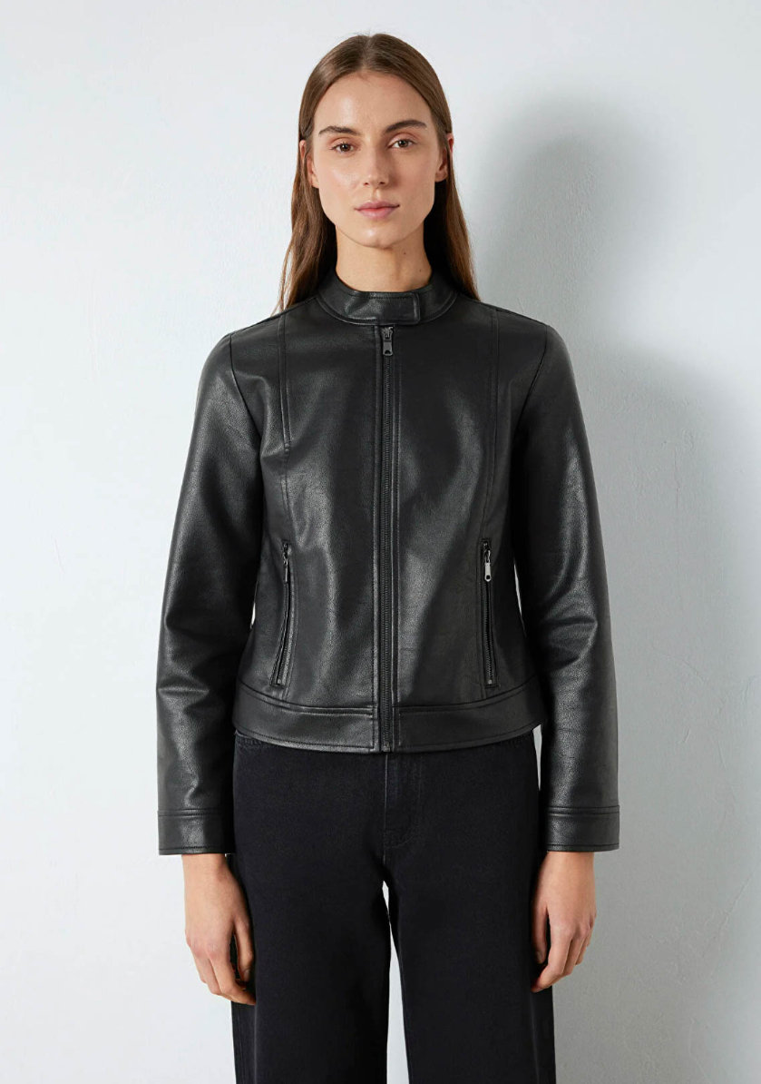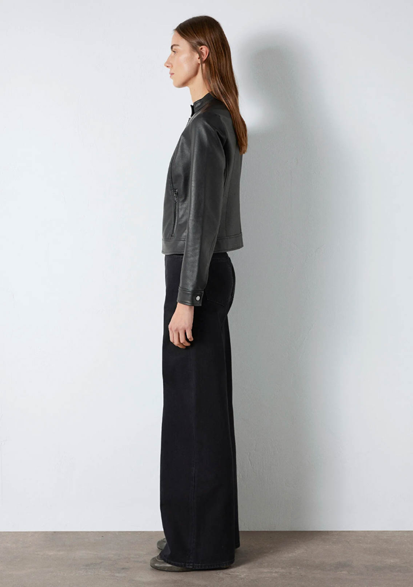 Mavi nin dış giyim koleksiyonundan Siyah Suni Deri Ceket. İki adet fermuarlı yan cep.