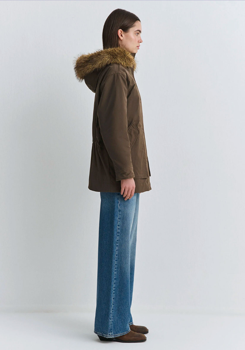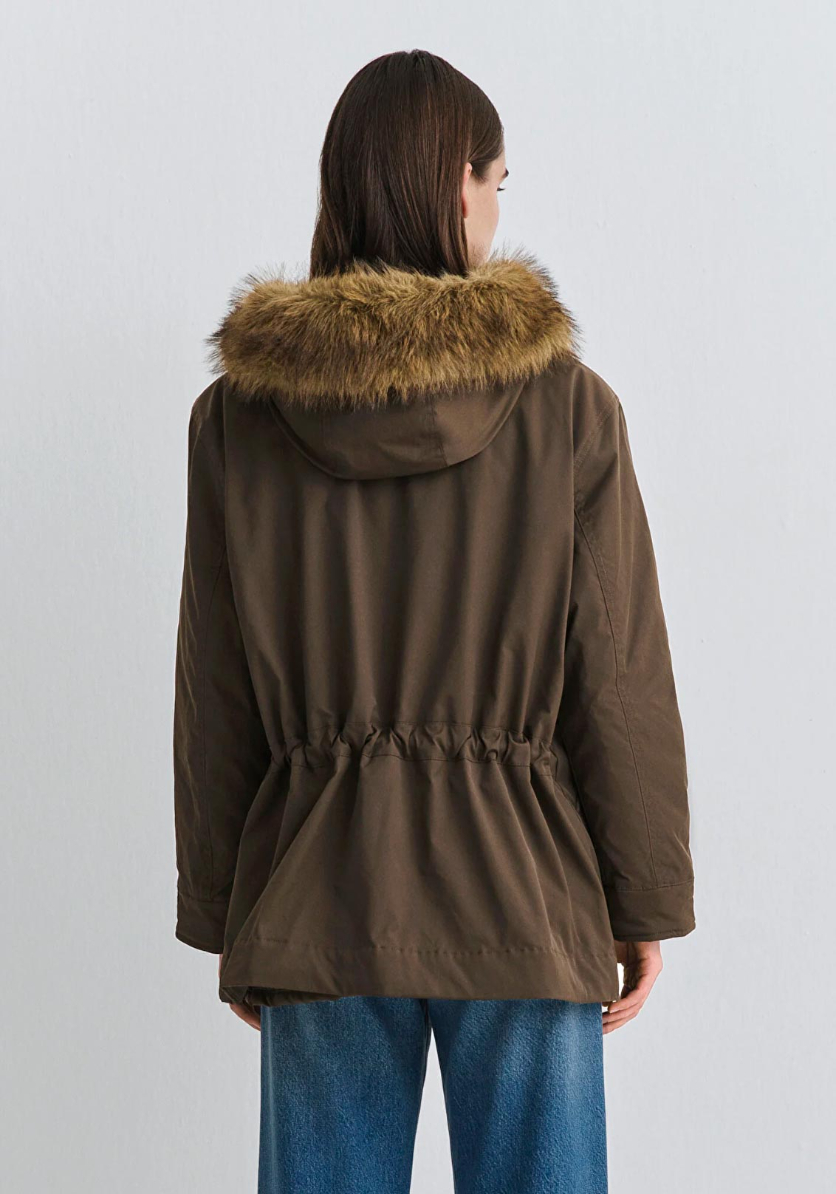 Mavi nin dış giyim koleksiyonundan Su İtici Haki Parka. İki adet çıt çıtlı kapaklı yan cep, içten iple ayarlanabilir bel, suni kürk detaylı sabit kapüşon.