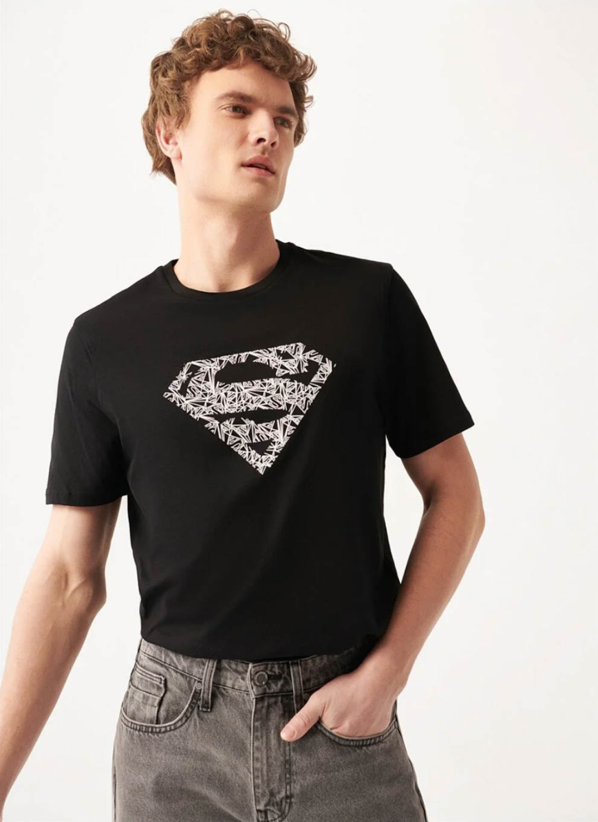 Superman Baskılı Siyah Tişört