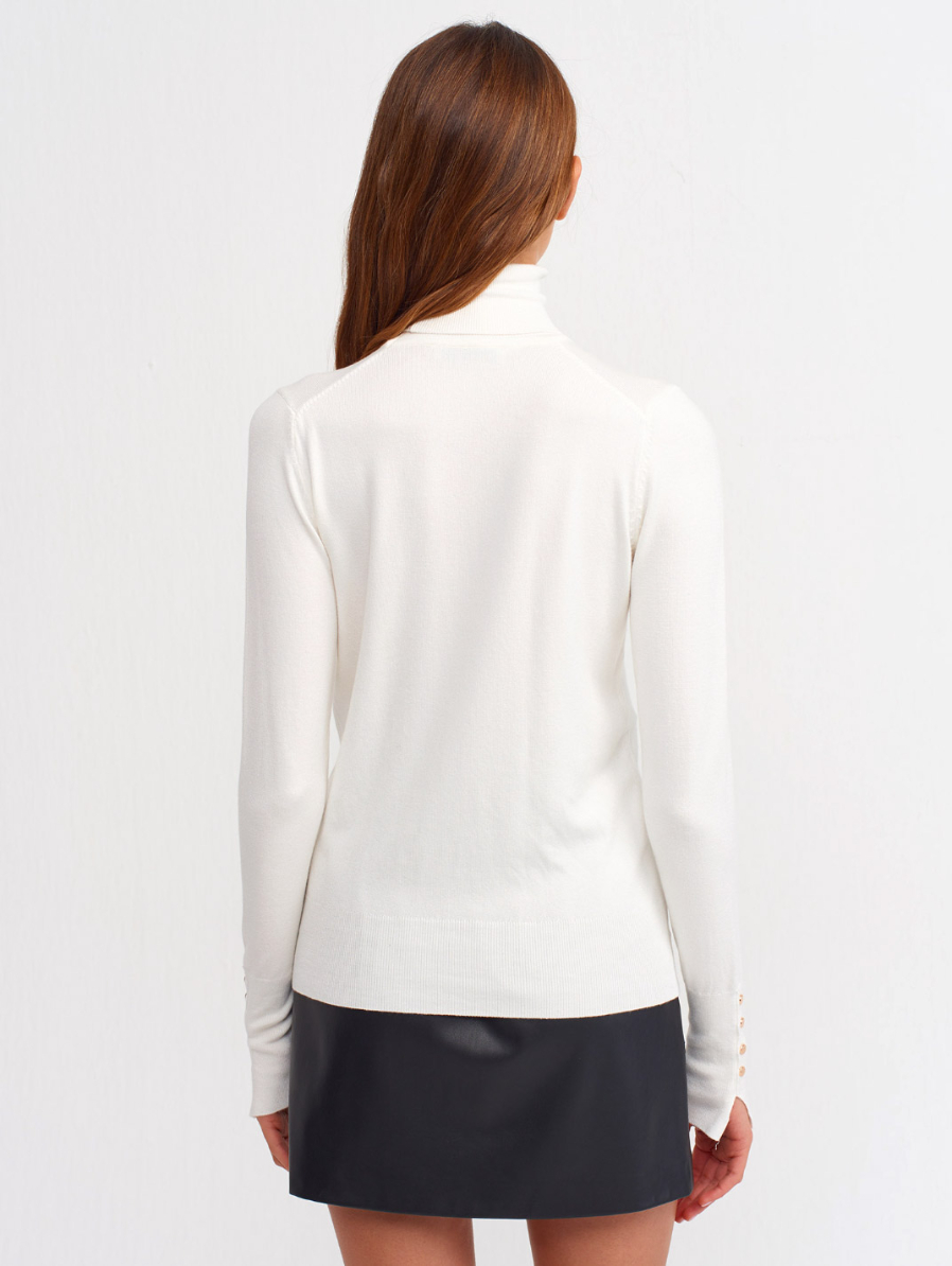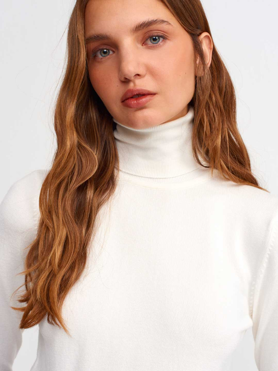 Tam Balıkçı Yaka İnce Çizgili Kadın Krem-Siyah Kazak