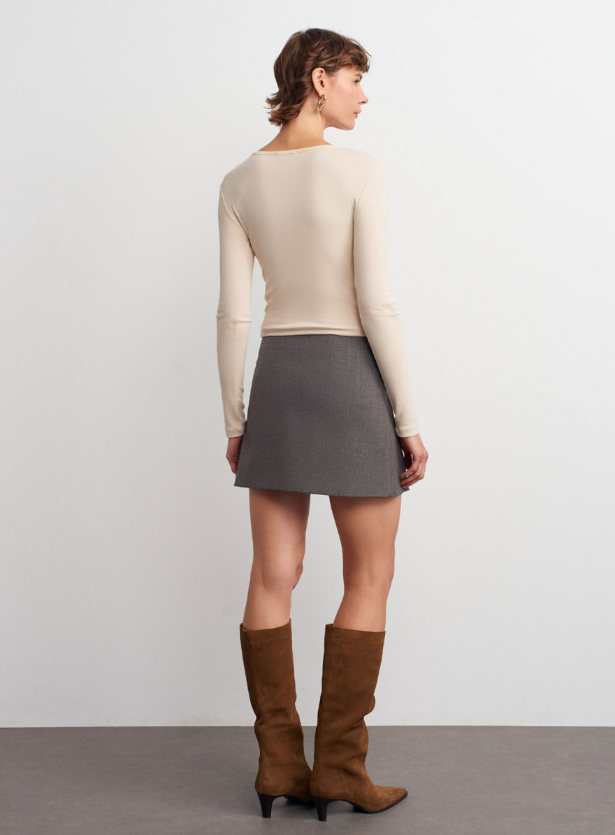 Ürün İçeriği : %63 Polyester %32 Viskoz %5 Elastan Mankenin Ölçüleri : Boy : 178 Göğüs : 83 Bel : 60 Kalça : 89 Numune Bedeni : 36/Standart Ürün Ölçüleri : Boy : 38 cm İç Bacak : 10 cm Bel : 38 cm