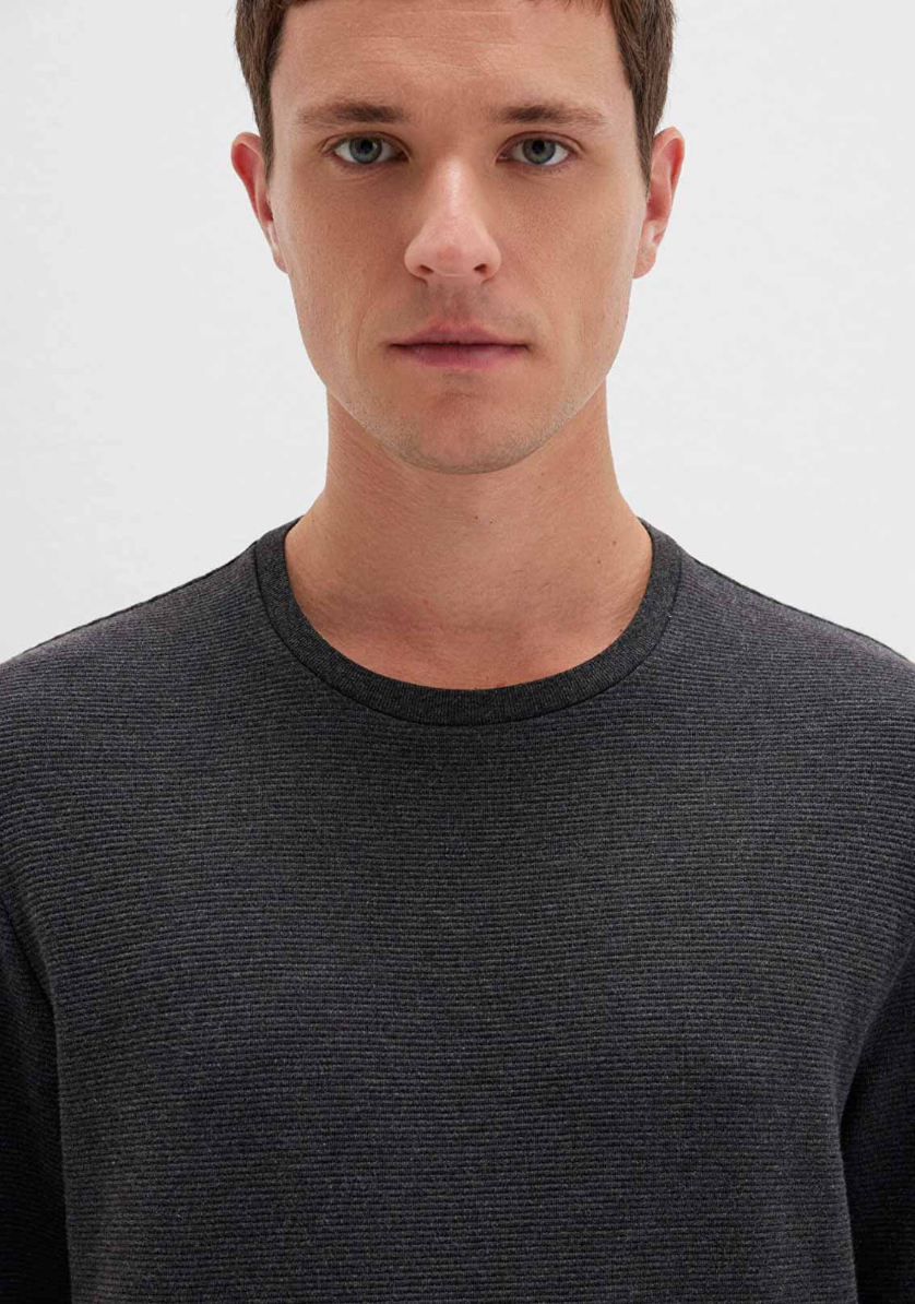 Uzun Kollu Antrasit Basic Tişört, yüzde yüz pamuklu orta ağırlıkta kumaştan üretilmiştir. Slim fit, dar kesim özelliği ve uzun kolları ile şık bir görünüm sunarken, bisiklet yakası klasik bir tarz katar. Düz dokulu antrasit rengi ile her tarza uyum sağlayan bu tişört, günlük kullanım için ideal bir seçenektir.