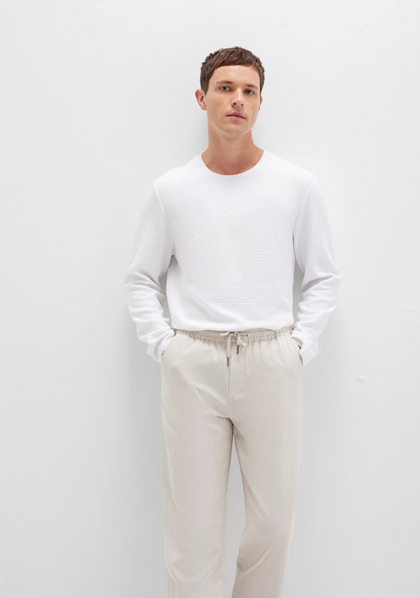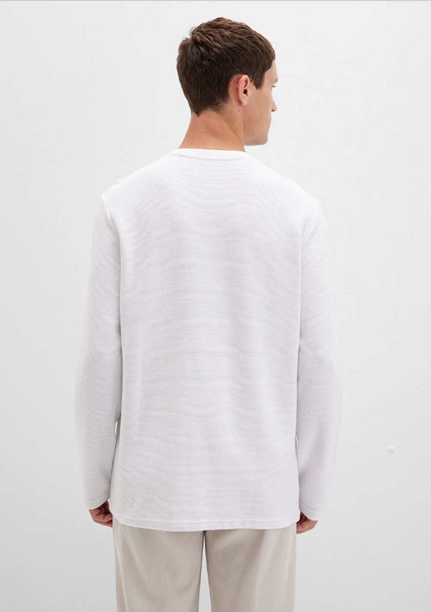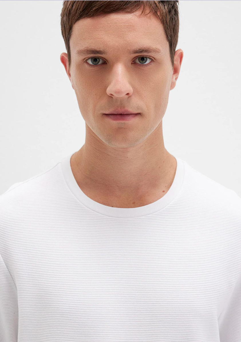 Uzun Kollu Dokulu Beyaz Tişört, yüzde yüz pamuklu orta ağırlıkta kumaştan üretilmiştir. Slim fit, dar kesim özelliği ve uzun kolları ile şık bir görünüm sunarken, bisiklet yakası klasik bir tarz katar. Düz dokulu yapısı ile öne çıkan bu tişört, günlük kullanım için ideal bir seçenektir.