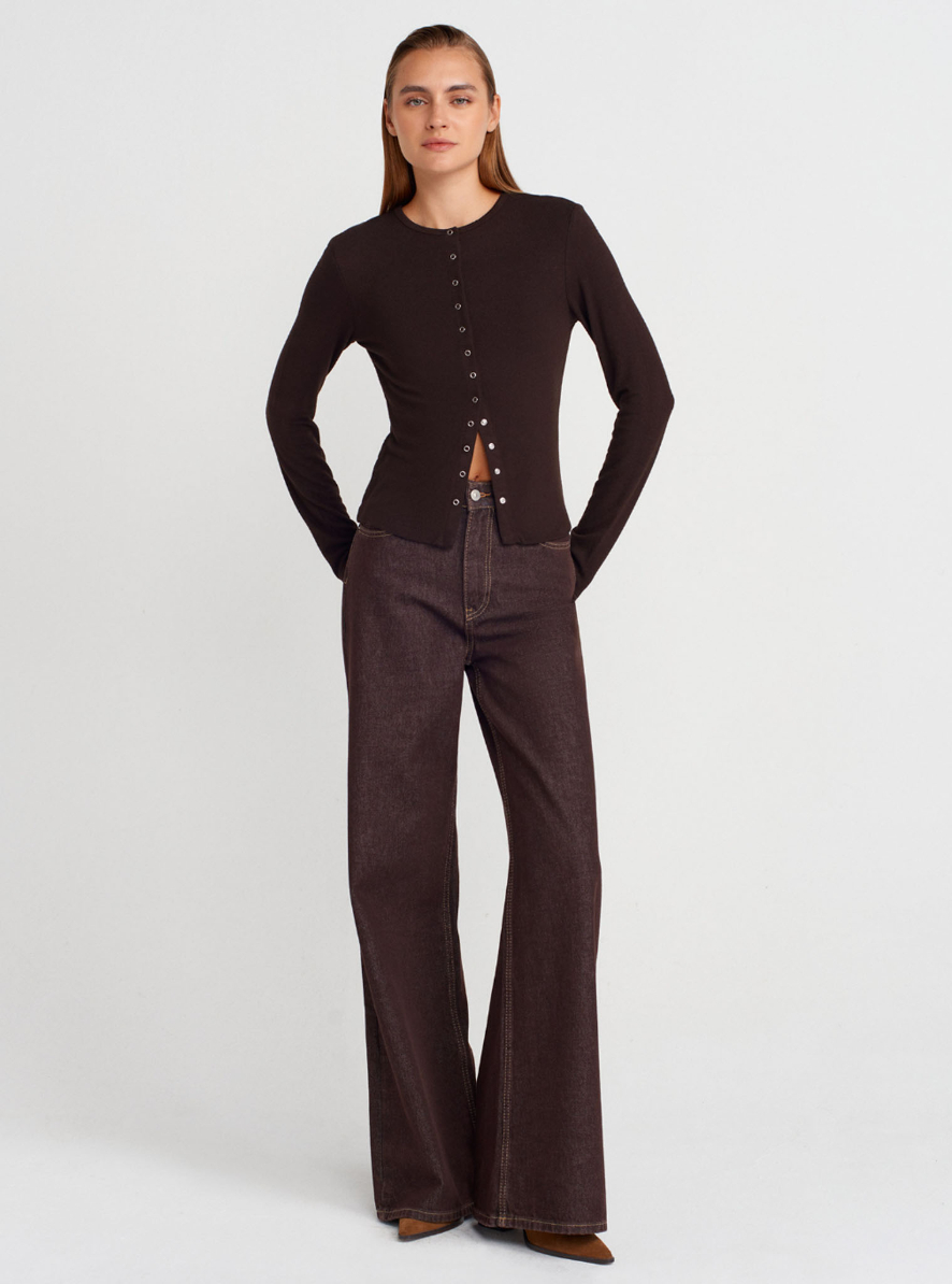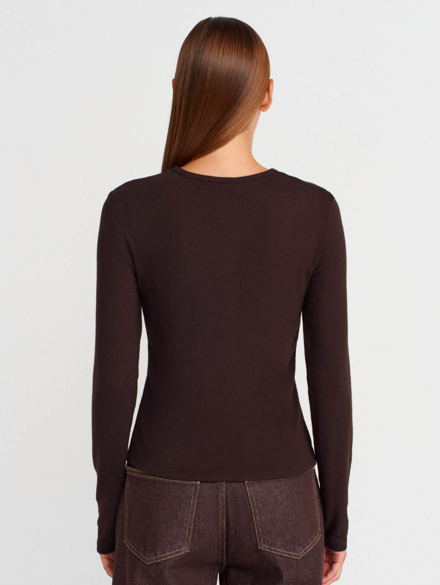 Kayık Yaka Modal Kaşmir Ultra Hafif Kahve Bluz