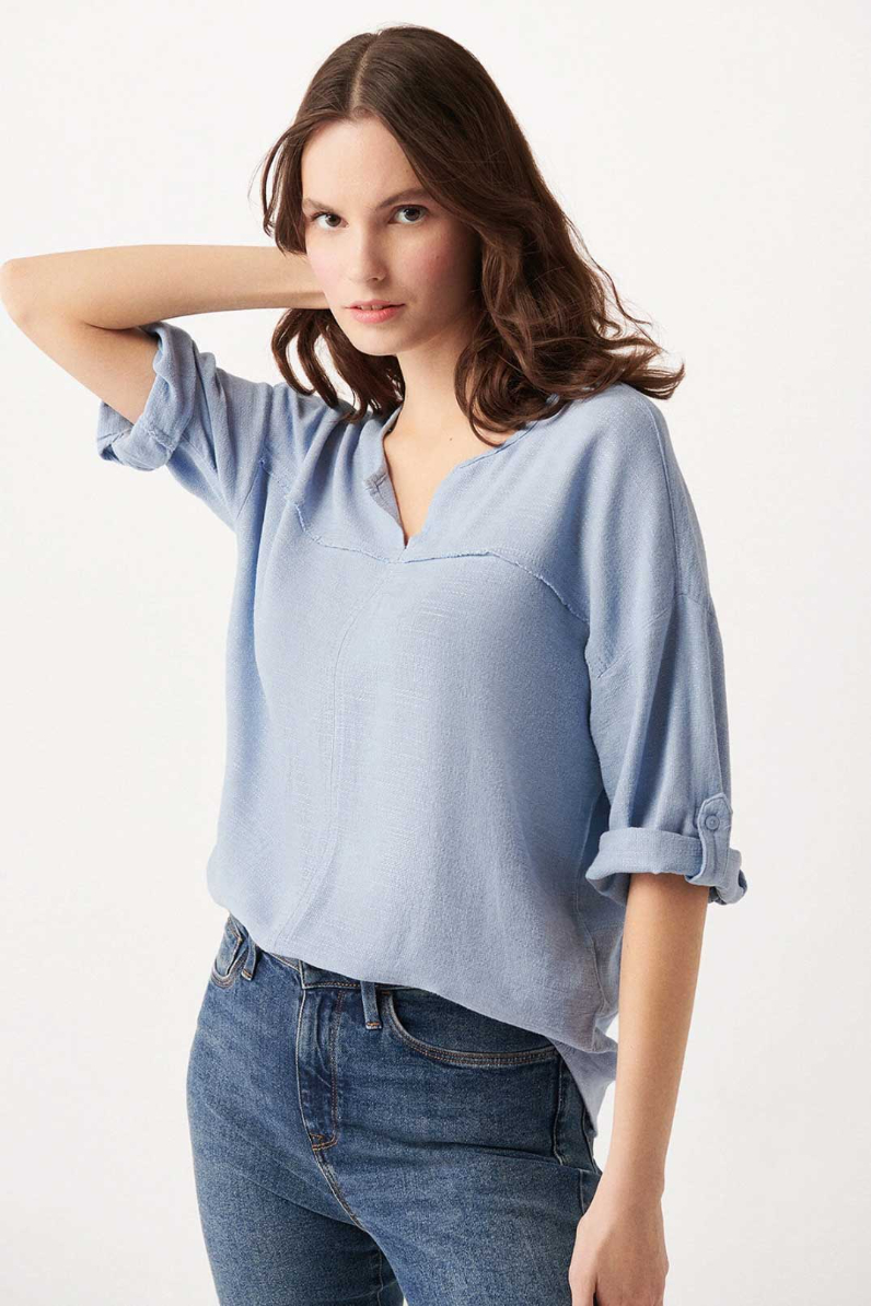 Mavi nin kadın koleksiyonundan V Yaka Sis Mavi Bluz.