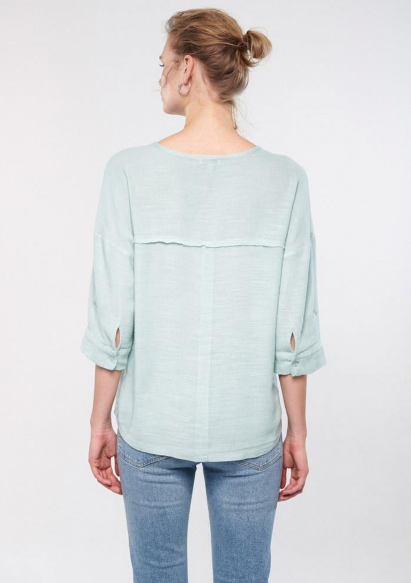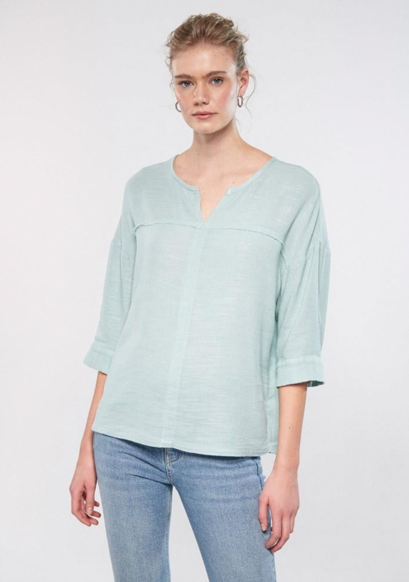 Mavi nin kadın koleksiyonundan V Yaka Gökyüzü Yeşili Bluz.