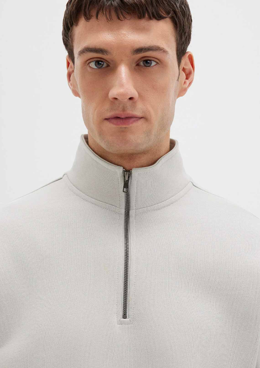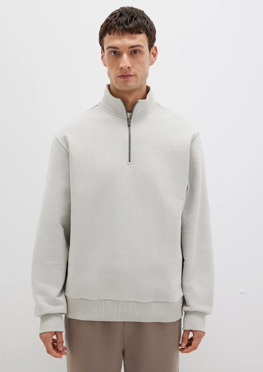 Mavi nin erkek koleksiyonundan Yarı Fermuarlı Gri Basic Sweatshirt. Şardonsuz, yarı fermuarlı dik yaka.