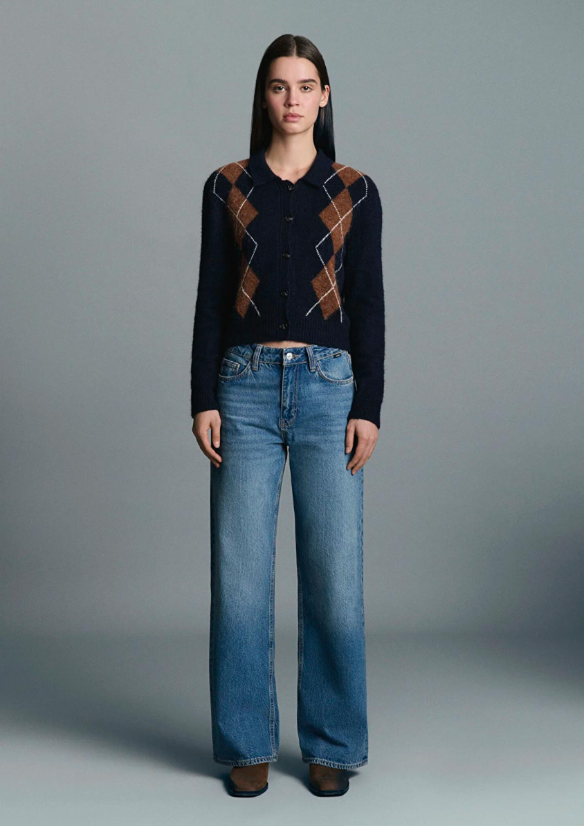 Mavi nin kadın koleksiyonundan Yün Karışımlı Baklava Desenli Lacivert Hırka.
