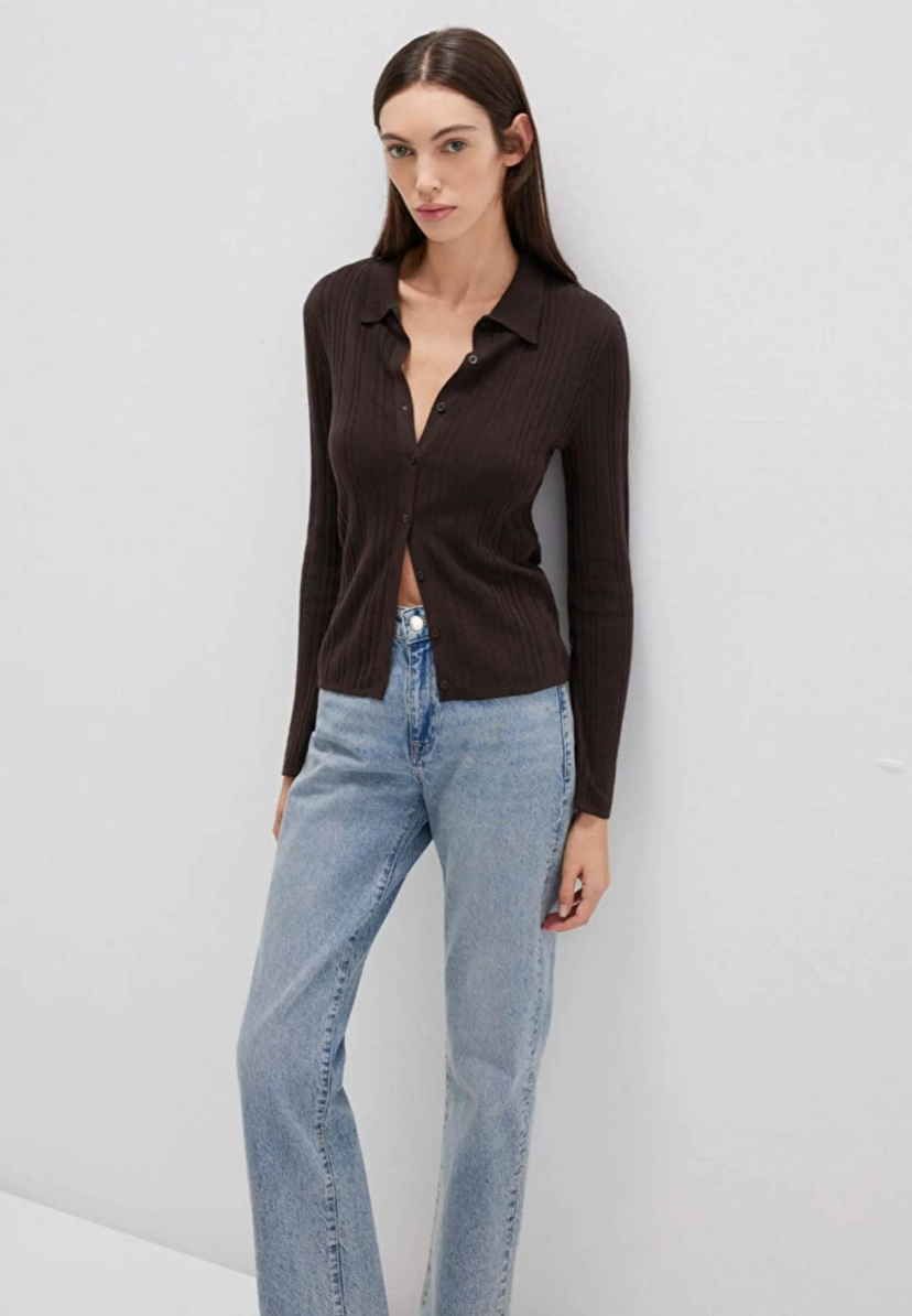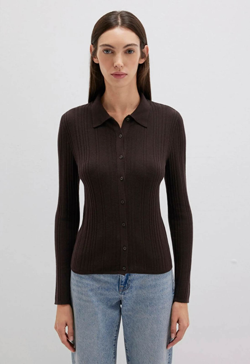 Mavi nin kadın koleksiyonundan Yün Karışımlı Kahverengi Triko Polo.